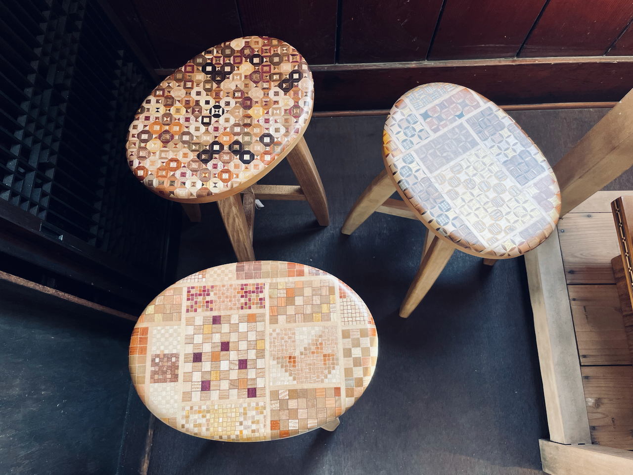 ボタンまで寄木。