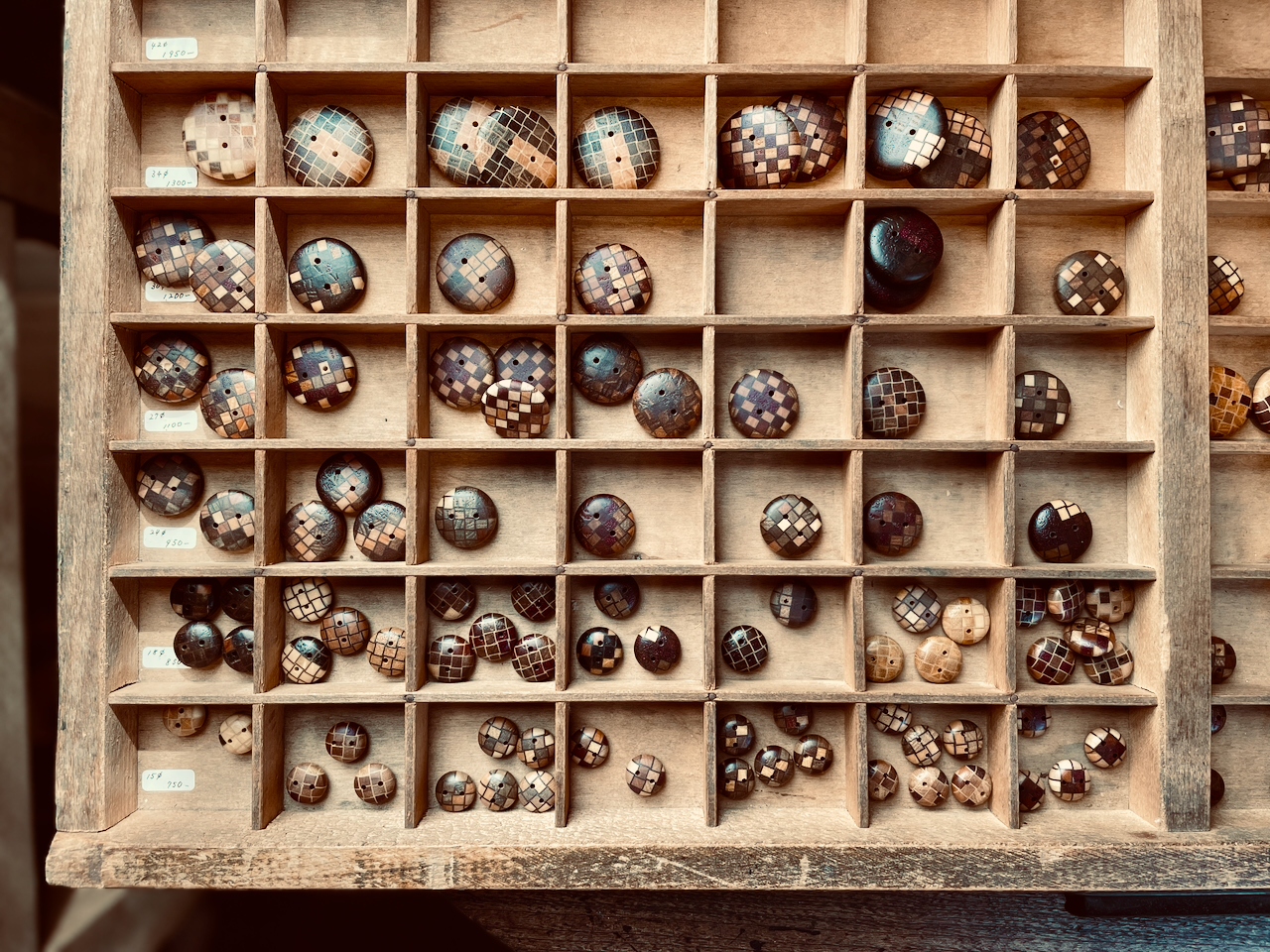 ボタンまで寄木。